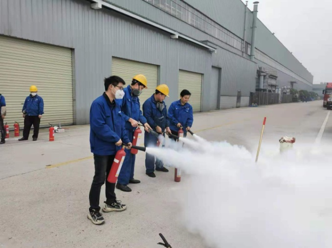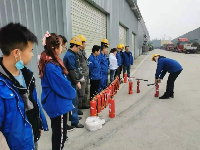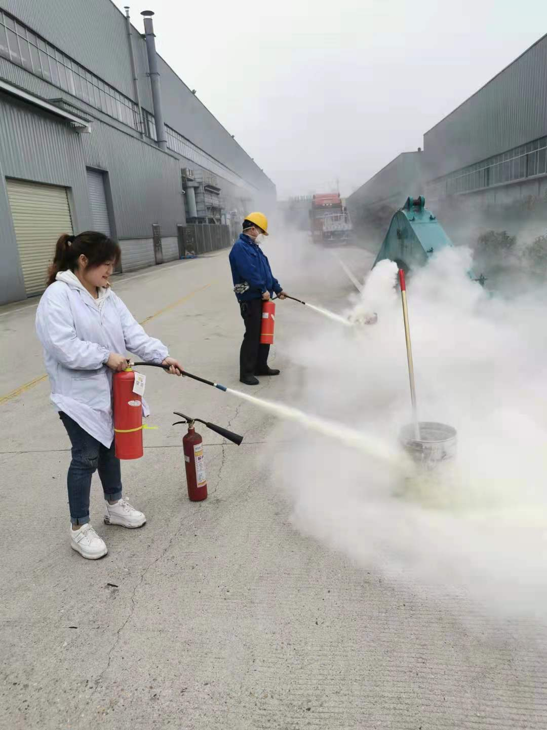 生产总监盛永清对消防安全器材的使用做了详细讲解和现场示范。